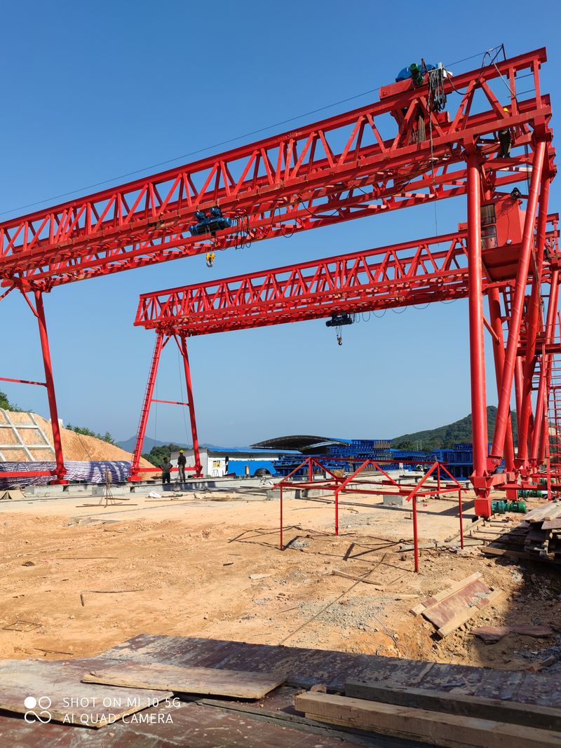 廣東清遠MG120/10噸-24米跨-12米提升4臺龍門吊陸續(xù)進場拼裝中