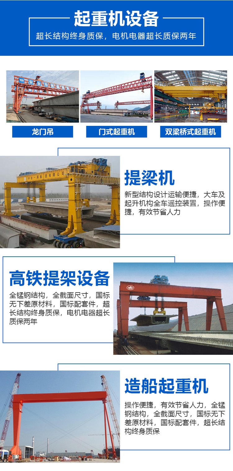 18738395689在鐵路集裝箱吊運(yùn)方面也發(fā)揮著巨大的作用,大大提高了集裝箱搬運(yùn)效率,縮短了物資貨運(yùn)時(shí)間。我公司緊跟國(guó)家建設(shè)形勢(shì),不斷提高研發(fā)能力,提高產(chǎn)品質(zhì)量,生產(chǎn)的地鐵渣土門機(jī) 、鐵路集裝箱門機(jī)、架橋機(jī)、移梁機(jī)等軌道交通起重機(jī)暢銷國(guó)內(nèi)外,獲得客戶一致好評(píng)。